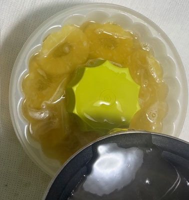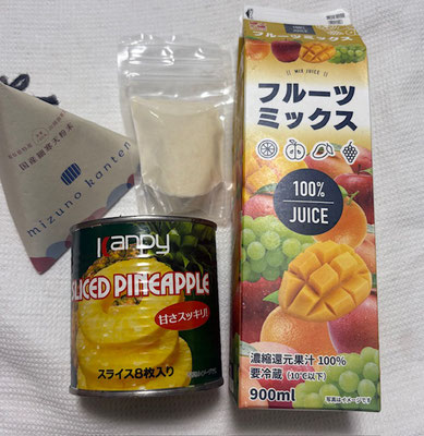 02日 9月 2025 ●ジュースで作る簡単ゼリー 今回は缶詰パインを入れて少し豪華に♪ 作り方:お好みのジュース1ℓに寒天約10gを鍋に入れて煮溶かし、冷やし固めて完成!! とても簡単なので是非❤ *細寒天の場合は4㎝くらいにカットして予めしっかり水に戻しておく *寒天量を増やすと弾力が強くなり、減らすとプルプルになります *酸味が強いジュースだと固まりにくい事があります tagPlaceholderカテゴリ: